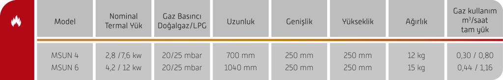 - 2 farklı güç tipinde olup kafe, restoran, otel, veranda ve ofis gibi mekanların açık veya yarı açık alanlarında ekonomik ısıtma amaçlı kullanılmak için tasarlanmıştır